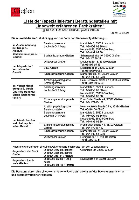 Die Interventionspläne intern und extern sind als Anlagen beigefügt, ebenfalls die aktuelle Liste der Beratungsstellen.